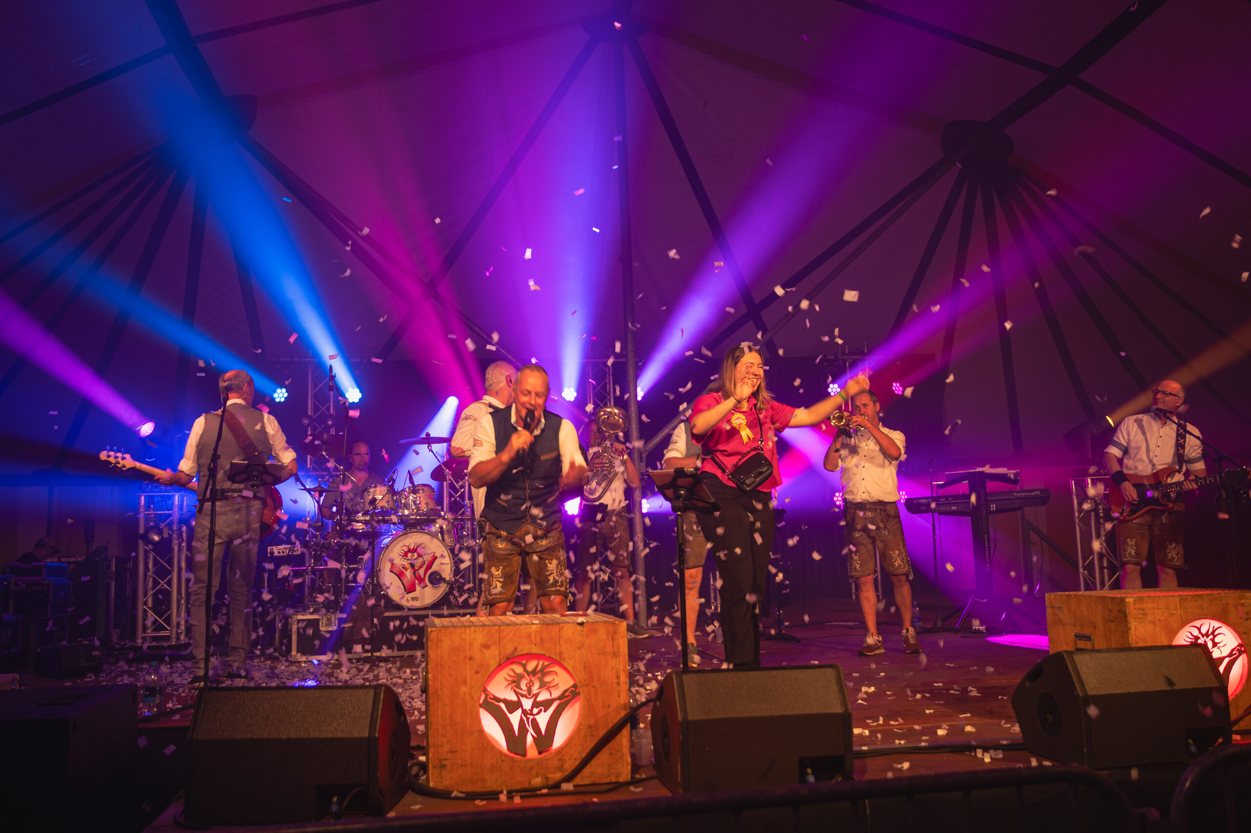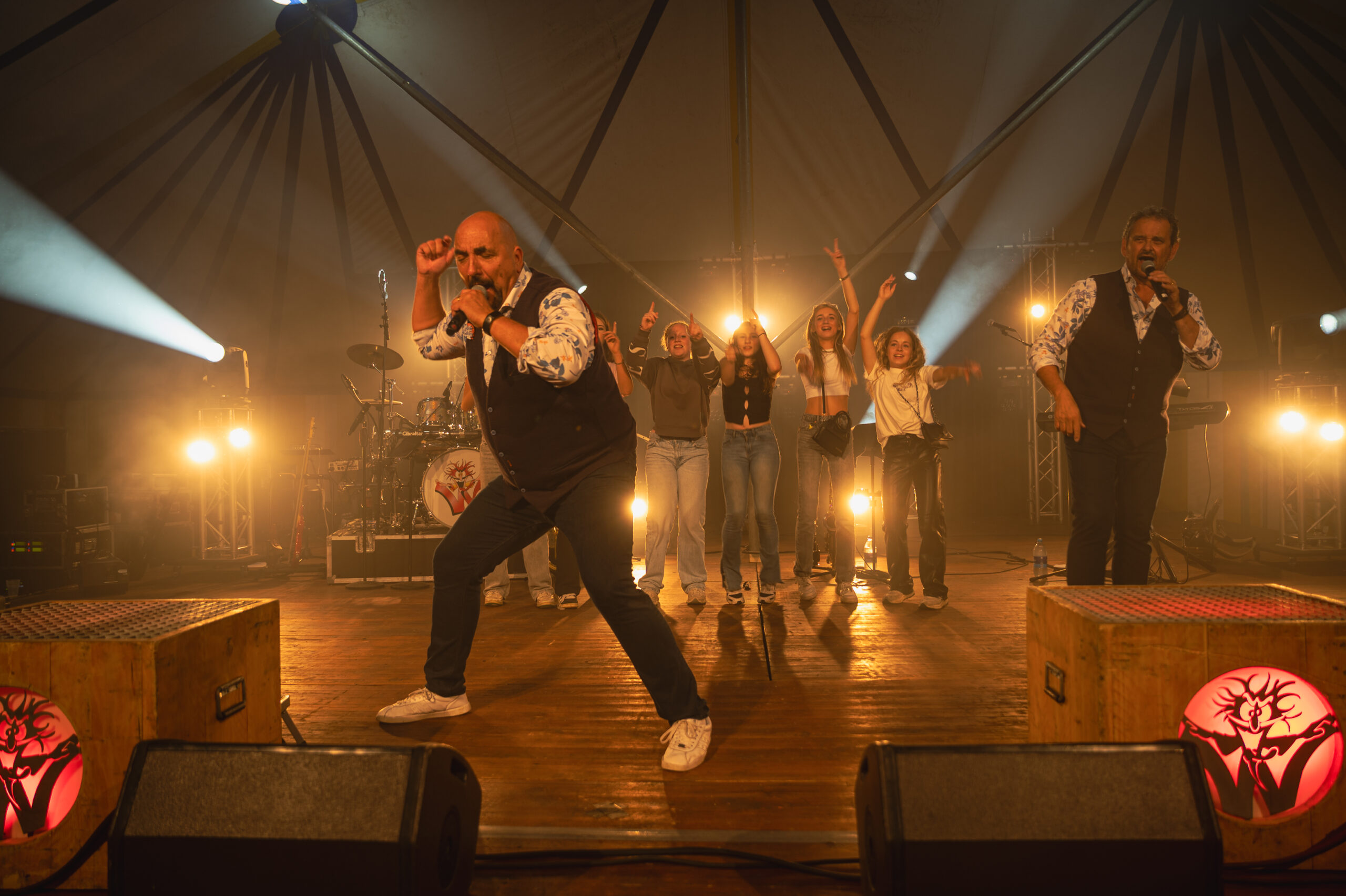 Tot 3000 bezoekers kunnen wij met onze geluidscapaciteit het complete terrein inclusief publiek in optimale feestmodus brengen, zowel overdag als in het donker. Licht en special effects zorgen voor visuele magie. Onze lichttechnicus stelt ruim van tevoren een lichtplan op, volledig op maat. Het totale concept moet perfect in balans zijn dat is onze focus. Ook voor een podium kunnen wij zorgen wij werken hier nauw samen met een podiumbouwer.
